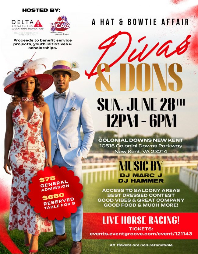 Hey Divas! Hey Dons! It’s BACK! You’re cordially invited to join us for…. Divas & Dons at the Downs: A Hat & Bowtie Affair Join us for an unforgettable day of style, vibes, and purpose as we gather in derby style to support scholarships and public service initiatives in our community! Sunday, June 28 | 12PM…